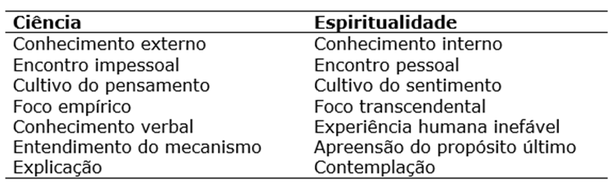Tabela 2.1: As sete polaridades dialéticas da ciência e da espiritualidade de Robinson (adaptado de Robinson, 2018, 2020).