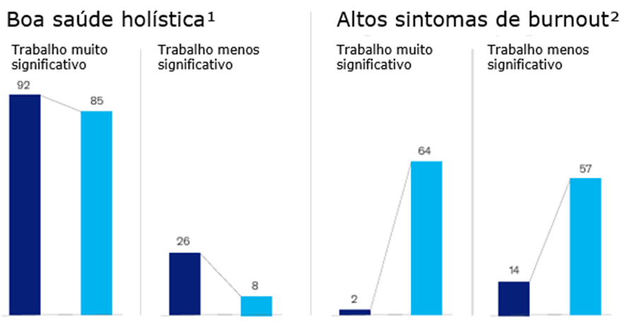 Boa saúde holística relatada e altos sintomas de burnout, por significância no trabalho, % de participação