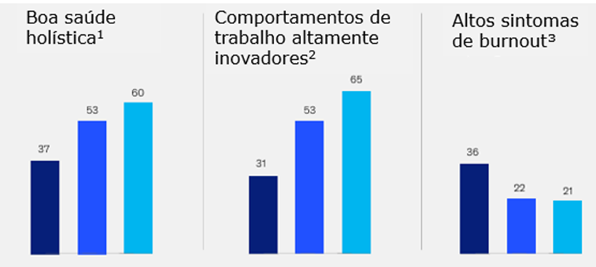 Entrevistados em locais de trabalho ideais relatam saúde holística mais positiva, comportamentos de trabalho mais inovadores e menos sintomas de burnout do que seus pares.