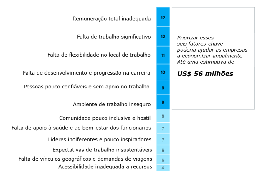 As organizações são capazes de capturar quase dois terços do valor de US$ 90 milhões em jogo com o desengajamento, priorizando seis fatores-chave para os funcionários.