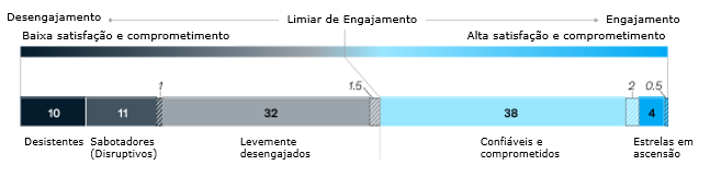 Dos seis segmentos, o grupo ativamente desengajado tem o potencial de exercer a maior influência negativa. Isso não se deve necessariamente ao seu comportamento, mas à forma como a organização os trata, aliada à percepção de seus pares.